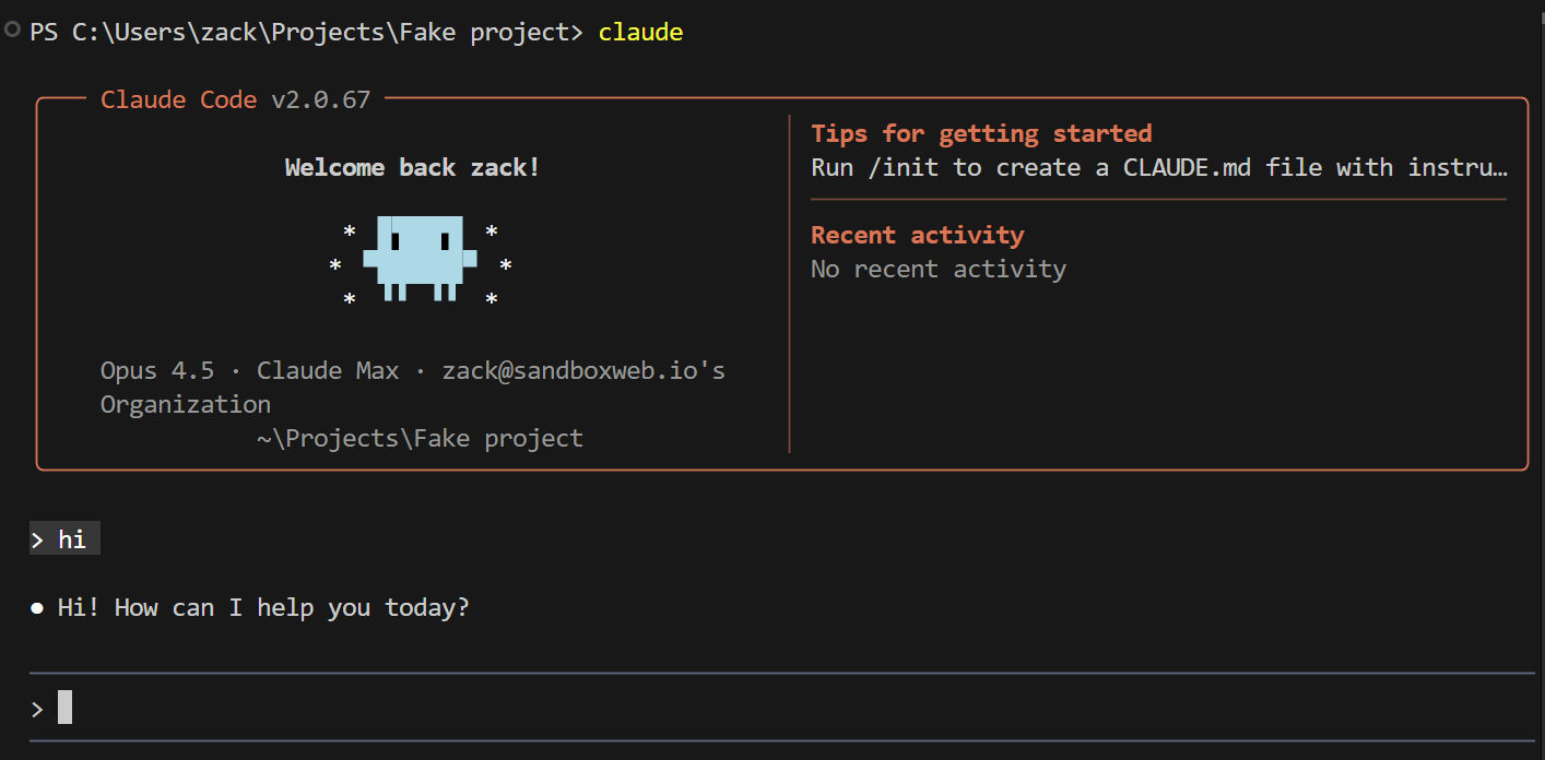 Now, go back to the terminal where you said hi to Claude and enter this: